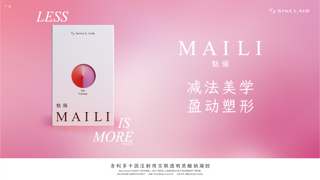未來已來,引領全域美學。站在科技與美學的交匯點,作為全域未來美學的領航者,SINCLAIR欣可麗美學以先鋒姿態重構未來美學的立體生態。依托MAILI魅儷以無氧科技與盈動塑形能力將玻尿酸推向2.0新紀元,與此同時,欣可麗美學也逐漸完成了從單一治療向全域未來美學方案的戰略躍遷,期待未來可以繼續帶給中國求美者無限想象與希望。