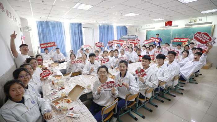 旗開得勝,考點應援,必勝客“花式”助力高考必勝。6月6日,天津市第二中學的教師、家長身著中式旗袍、送出必勝客比薩,為全校高考考生送去“逢考必勝”祝福,她們還為考生們拍攝應援視頻,有人手持奪“葵”折桂、有人書寫“逢考必勝”、有人提拉一舉高“粽”,無不凝聚著父母、師長對孩子們的美好祝愿。高考首日,在天津市南開中學、南開大學附屬中學高考服務點,必勝客志愿者準備考試用品、瓶裝水,服務高考考生、家長,現場還準備了美好祝福的卡片送給高考考生,用服務與關愛在場外祝福各位考生“逢考必勝開門紅”。
